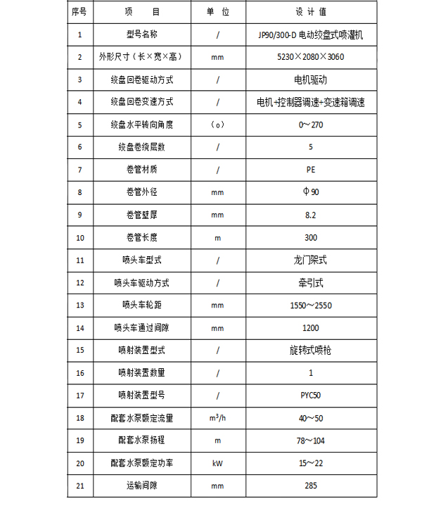 喷灌机设备产品概述与性能参数表