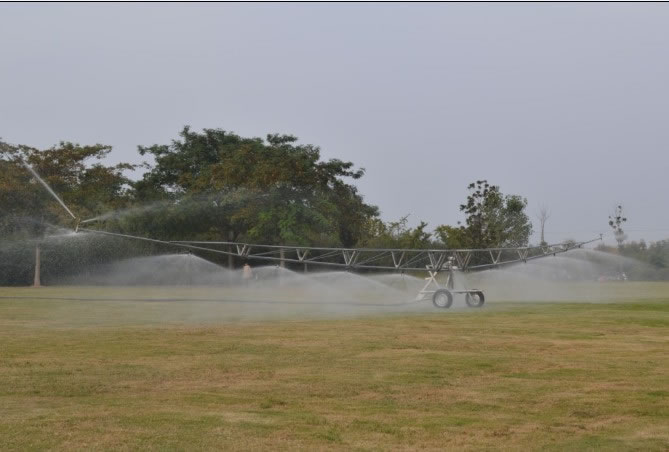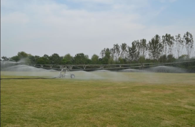 绞盘式喷灌机设备使用的单喷头相对喷洒流量大,喷灌强度高,受风影响大,主要使用于大田作业。为了提高绞盘式喷灌机的适应能力,我们研制开发了26m和12m两种桁架,不仅能进行大田作业,还可以代替单喷头进行经济作物的喷洒,也可以在风力大的地区进行农田作业。26m桁架配套大型喷灌机,可控制34m范围,安装3个BPZ半圆折射式喷头,8个PZ全圆折射式喷头以及2个ZYI喷头或2个半圆折射式喷头,同时每个喷头又可根据所喷洒的作物选择安装7种不同喷嘴,它的主要特点是低压、节水、节能、喷灌强度低、雾化性能好、受风影响小。特别适合于风力大的地区进行经济作物的喷洒。1-2m桁架配套轻型喷灌机可控制20m范围,桁架式喷灌机在我国西北、东北等地区使用后深受欢迎,该产品使用前景广阔。