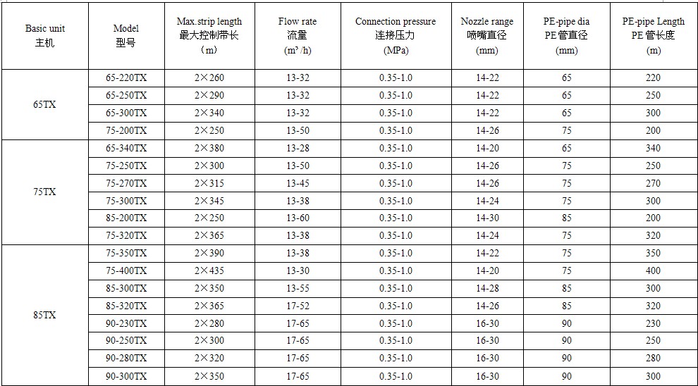绞盘式喷灌机设备性能表
